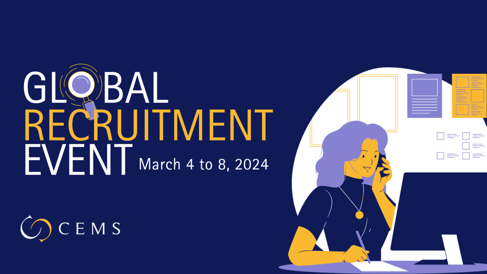 Save the date and make sure you are all set up for this unique CEMS recruiting event that will take place from March 4 to 8. If you have any questions, please email us at corporatepartners@cems.org