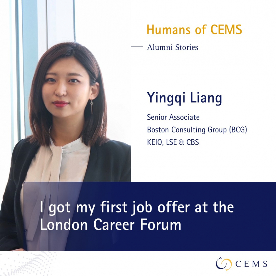 Today, in our Humans of CEMS series, we are happy to introduce you to Yingqi Liang, Senior Associate at Boston Consulting Group. In this interview, she reflects on intercultural career at BCG and what advice she wants to give current CEMS students.
